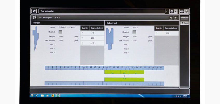 By programming a series of bend angles and bend depths complex sheet metal work can be bent up. Using both the computer control and BySoft software to create the part in 3D on the machine enables the machine programmer to simulate the finished part, tooling requirements, the correct bend sequence and cut size. The cut size can be used to verify the developed blank size from the 3D model if required to check all the calculations are correct before any materials are cut. The machine controller, can draw a component’s cross section on the screen with their finger and then add dimensions to create a bending program, see a 3D image, simulate the bending sequence and select the correct tooling for the material type and thickness. ByVision controller can be used to calculate bending section cut sizes witch is suitable for simple rectangle sheet metal component blank and to check these against the 3D models software developed blank size for accuracy.