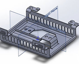 As well as achieving the correct tolerance of sheet metal work from the 3D model the actual simple alignment of parts can be checked. The example show here of a sheet metal box and cover is a classic example. The box and cover may be presented to us as 2 separate 2D drawings on a DXG or DXF file or even a PDF image. By creating a 3D sheet metal model of the 2 parts together with the cover in position on the box we can check out for the customer any problems with the position of holes and the correct clearance for the cover to fit allowing for bend radius and powder coating thickness. If there is a problem at this stage it’s much easier to change the design slightly with the customer than manufacture a box and a lid both to the design drawings but not actually fitting together in assembly.