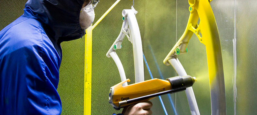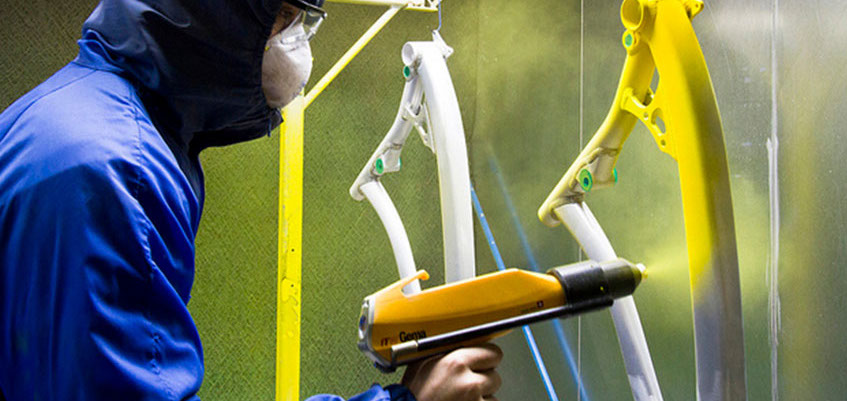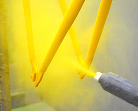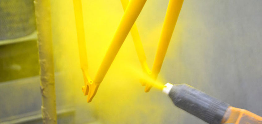 سپس این پودر روی سطوح فلزی که در محل مشخصی با الکتریسیته ساکن باردارشده اند، پاشیده میشود و پس از این مرحله در فر با دمای 450 درجه فارنهایت پخته میشود. در نهایت یک سطح صیقلی صافت یا بافت دار پس از خنک شدن کاملاً به دست میآید.
